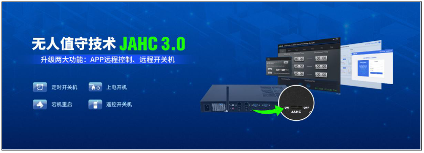 JAHC是杰和科技经过多年技术积累,结合行业需求自主研发的一套高可靠无人值守系统。该系统能够在设备长期无人值守的情况下,实时监测和控制设备的运行状态。经过不断的技术优化和功能升级,杰和科技技术团队在系统原有功能的基础上进一步升级,推出了JAHC3.0版本,能够帮助用户实现APP远程控制、局域网内远程开关机等系统功能。