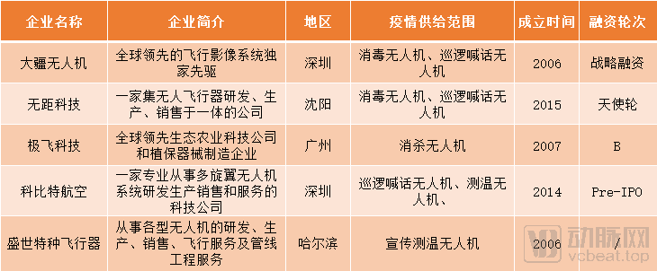 为疫情做贡献的无人机企业(资料来源:动脉网根据公开资料整理)