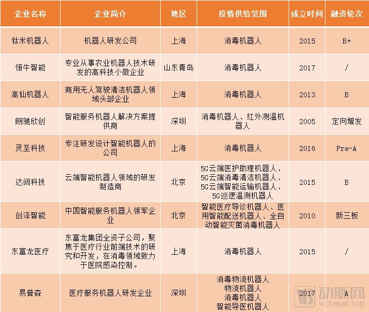 为疫情做贡献的消毒机器人企业(资料来源:动脉网根据公开资料整理)
