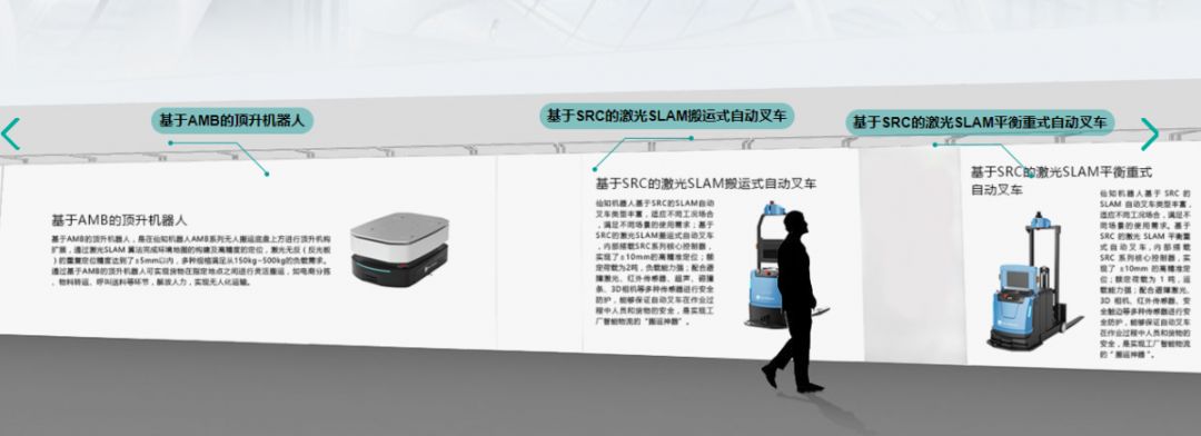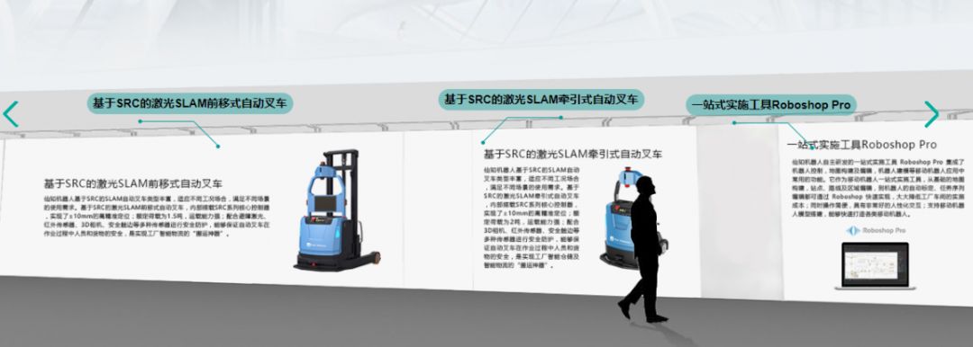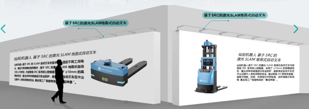 本次仙知云展陈列的有移动机器人最强大脑SRC系列核心控制器、AMB无人搬运底盘、基于AMB的顶升机器人、基于AMB的辊筒机器人、基于AMB的复合机器人、基于AMB的潜伏牵引机器人、基于SRC的激光SLAM搬运式自动叉车、基于SRC的激光SLAM搬运式自动叉车、基于SRC的激光SLAM搬运式自动叉车、基于SRC的激光SLAM搬运式自动叉车、基于SRC的激光SLAM搬运式自动叉车、基于SRC的激光SLAM搬运式自动叉车及一站式实施工具Roboshop Pro等,产品众多,可以让大家大饱眼福!