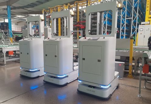 据该项目售前经理梁凯翔介绍:在生产过程中,众多工艺对联接都有严格要求。譬如上下料滚筒线对接精度不大于5mm等,同产线不同品类产品转产调整时间小于8小时,线边仓补货间隔时间小于15min,一次物料发运需对接多个工位等。斯坦德激光导航AGV均满足了以上苛刻的生产要求,有效使用率达到了98%以上。