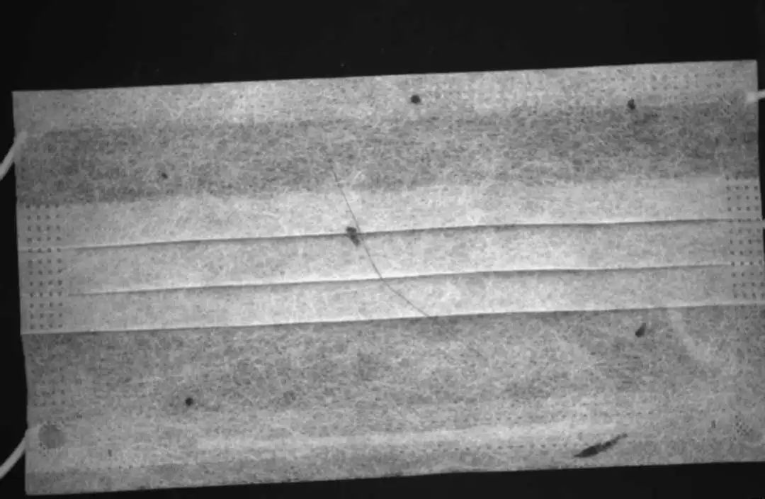 产品方案:运行于VC4000视觉控制器的VM算法平台能够使用深度学习算法,有效检测口罩表面没有固定姿态的缺陷,如脏污、毛发等,经过训练的算法处理效果远高于基于灰度分割的普通算法。