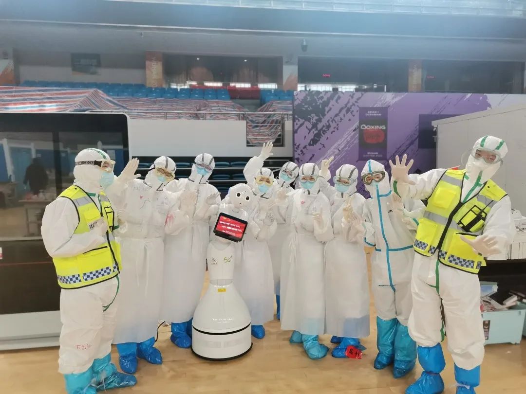 2月29日,5G智能医护机器人Ginger、5G安保机器人和云端AI智能方舱指挥系统等率先入场,其他的机器人和智能设备陆陆续续完成进场。当天完成调试之后,Ginger和方舱医院里的大爷大妈共同跳了一支舞蹈来庆祝,交付工程师也分不清护目镜里的是汗水还是泪水。
