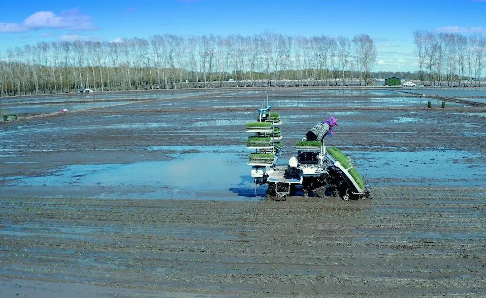 丰疆无人插秧机正在黑龙江一处农场运行着