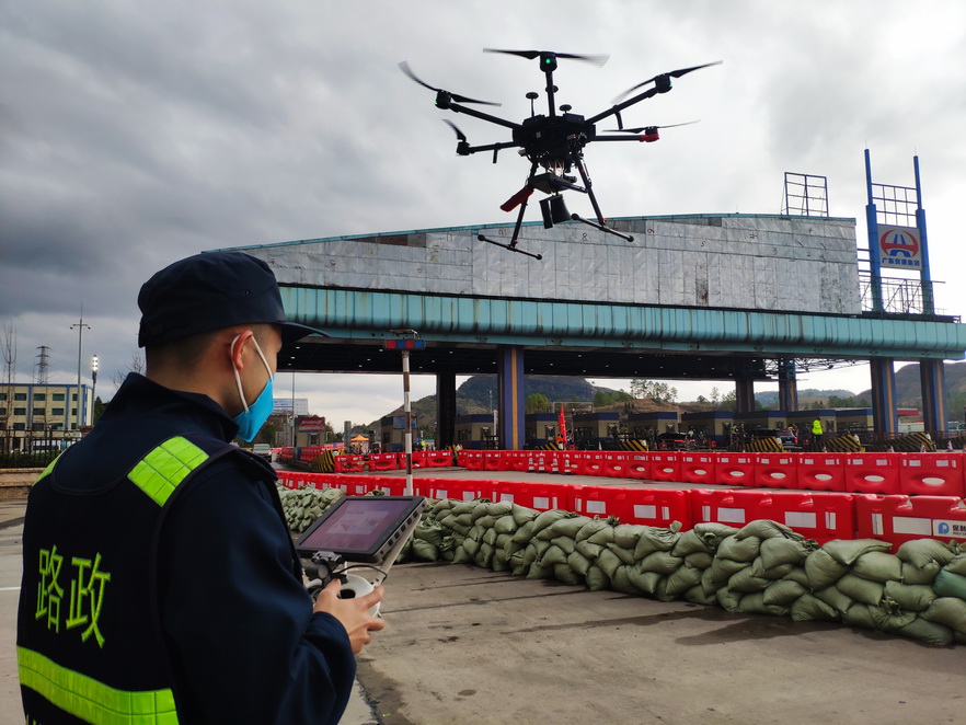 伴随着“嗡嗡嗡”的轰鸣声,数架无人机分别盘旋于京珠北高速、二广高速和渝湛高速等重要入省通道,并把拍摄数据利用5G网络实时接入后台监控系统。