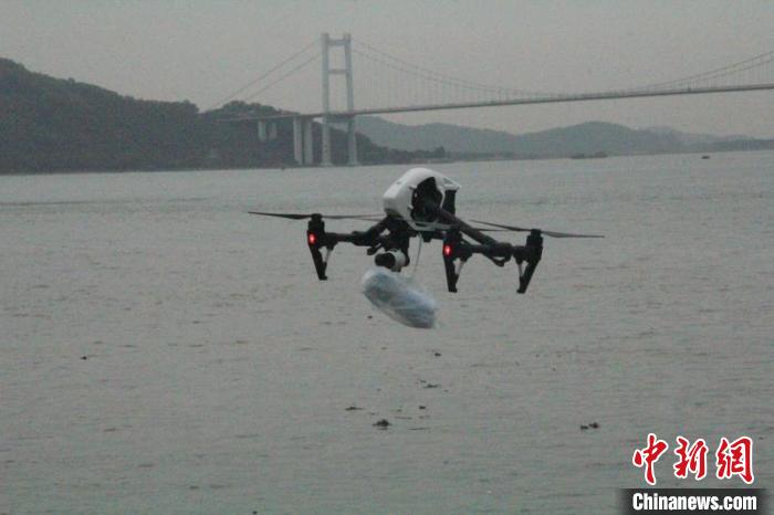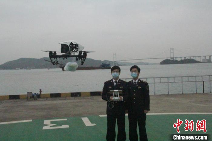 海事处无人机“空投”口罩助船舶船舶安心出港 广州海事局供图