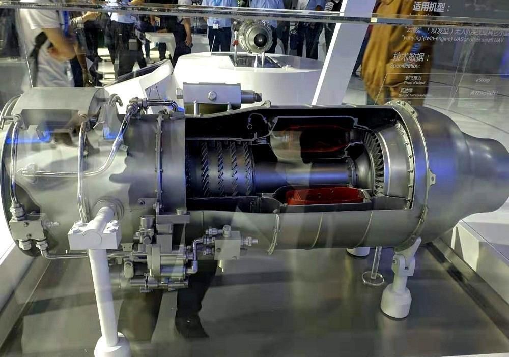 2019年9月18日开幕的第十八届北京国际航空展上,中国航空发动机集团有限公司首次展出双发“云影”无人机采用的AEF50E涡扇发动机,其起飞推力不小于500kgf,耗油率不大于0.725kg/(kgf.h),进口直径308毫米,长度1135毫米,最大使用高度15000米。