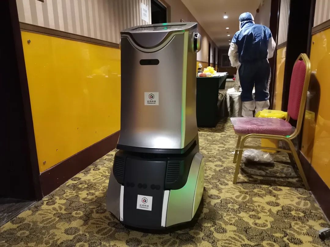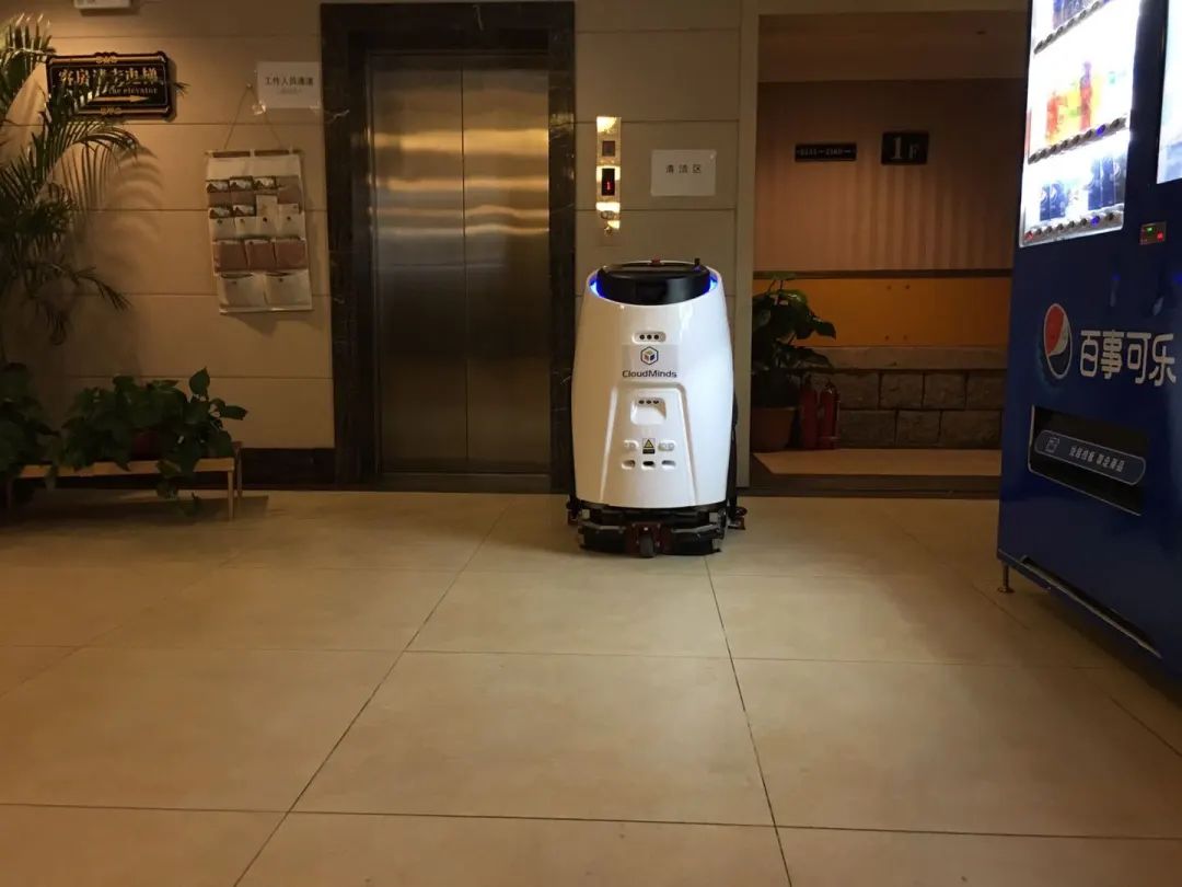 新冠肺炎隔离点也对清洁提出了更高要求,目前,达闼5G云端清洁消毒机器人已经部署于隔离点一层的大厅,实现了24小时不间断清洁服务。机器人专门搭载消毒水箱,能够独立完成高效消毒、清扫、除菌等工作。