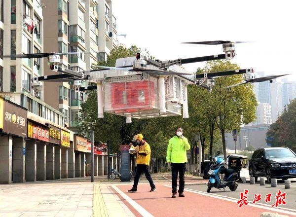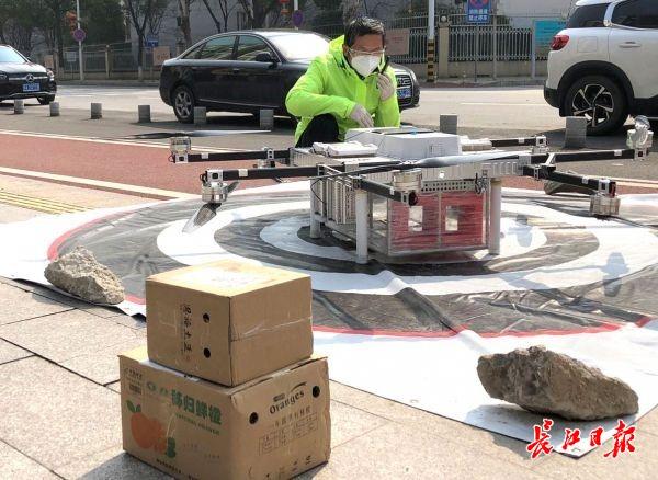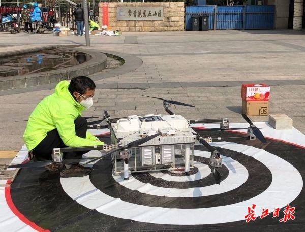 疫情期间,每天投送200架次,完成派送130单左右。(长江日报-长江网记者刘斌 摄)