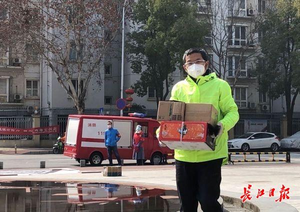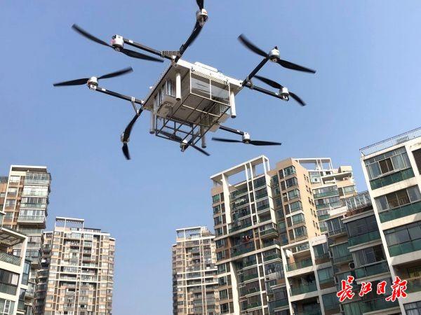 5日,东西湖区常青花园小区上空,4架无人机马达轰鸣来往穿梭,投送居民生活所需的药品、鲜果等物资。据现场一位顺丰快递工作人员称,快递无人机从将军路顺丰仓库起飞,可运载10千克载重,续航20余分钟,最大抗风可达7-8级。