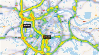 北斗大数据平台记录的武汉火神山医院、雷神山医院建设期间武汉市卡车运力热力图。四维图新供图