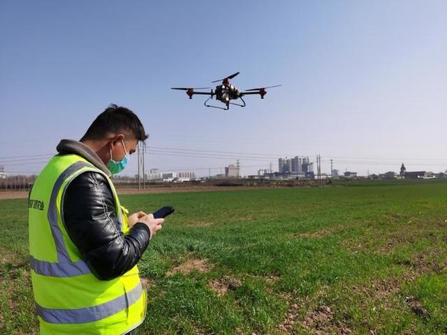 “以前大家都是背着药箱喷洒农药,不但效率低,而且药箱很重,背着特别累。后来一直用自走式喷药车。”刘银乾说,这段时间温度高,正是麦苗起身时,自走式喷药车会压倒麦苗,现在用植保无人机,快捷高效不伤苗。