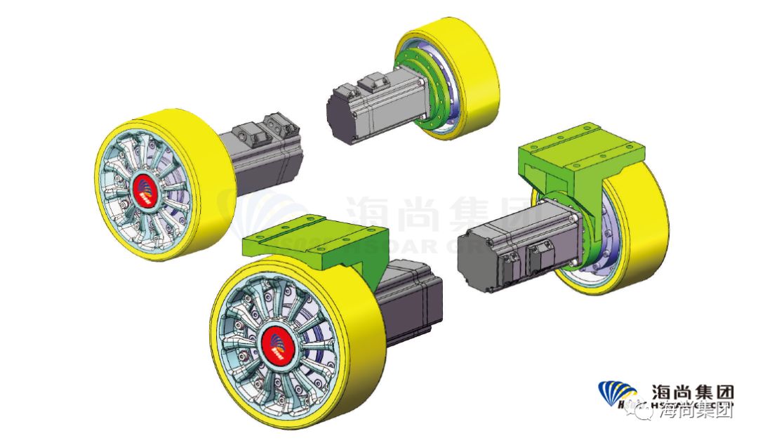 海尚“差速轮毂驱动模组”,以海尚“矢量摆线减速机”为核心,轮毂采用与高端汽车轮毂相同牌号的铝合金及低压铸造工艺,用进口聚氨酯材料包胶,经过缜密的设计验算和计算机仿真分析,以及严苛的场地10万公里实际验证,具有性能可靠、方便安装、便于维护等特点,同时尽可能满足客户的应用需求,在轻量化、高承载、大扭矩、高速度等方面为客户提供可靠方案。