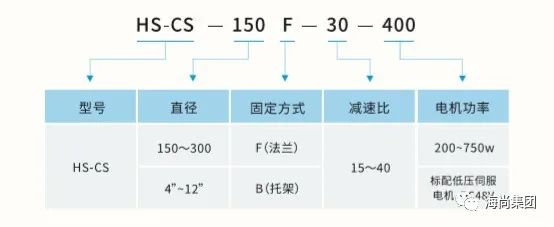 例:差速轮毂驱动模组,直径150,速比30,法兰式安装,配低压伺服电机48vDC,400w,则标记为: