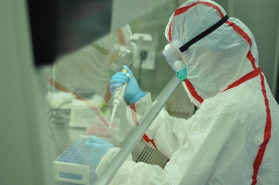 深圳海关保健中心实验室人员检测病毒样本