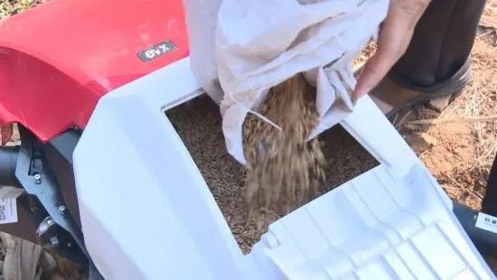 作业现场,技术人员李树磊调试着名为“极飞2019款P30”无人机。在设定好相关参数后,将浸泡过的种子放进无人机的盒子里,随后无人机起飞,按照既定航线,在平整好的田块上空约2.5米处往返播种。