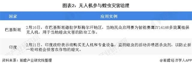 2月底新冠疫情在全球蔓延,其中韩国、意大利以及伊朗等国的疫情较为严重,与此同时,蝗虫灾害也由非洲蔓延至东南亚地区,给全球的生产发展和人民生活带来了重大的影响。在此期间,巴基斯坦、印度等国采用无人机参与蝗虫灾害治理,取得较好的效果。