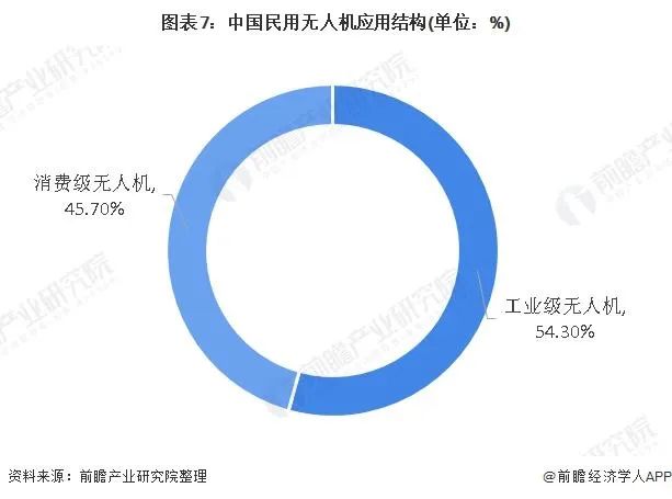 相关数据显示,目前我国工业级无人机在民用无人机中的占比达54.3%,工业级无人机是民用无人机的主体。