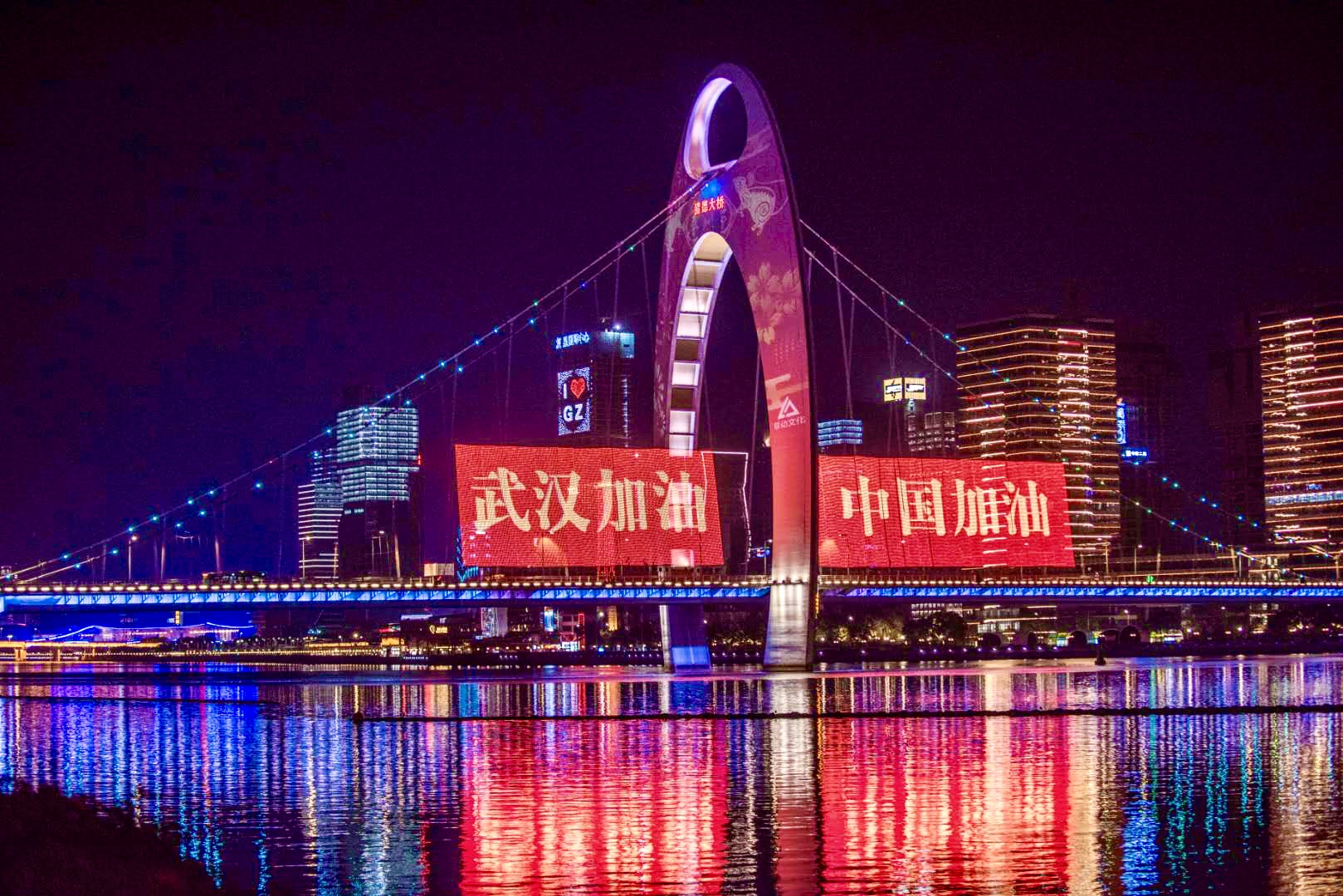 珠江两岸灯光“战疫” 为全市人民加油鼓劲