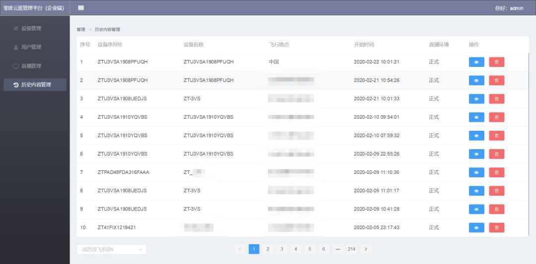 除了查看飞行直播,云巡管理系统支持添加飞行设备和飞手信息,添加备注或进行分类标注。这样,管理者通过后台即可查看飞机的累计飞行时长,飞行地点,以及飞手的飞行操作记录等讯息,方便对设备进行维护管理。如此对设备有效的管理、维护以及对操作人员的合理安排,在高效率完成相应工作的同时可以大大降低企业的运营成本。