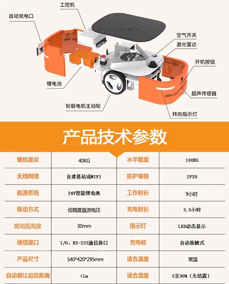 木蚁M8TP定点配送机器人,依托木蚁核心产品--M8移动底盘,不但在SLAM 基础上结合多种传感器,并拥有小巧的体积,以及高强度的负重能力,运动灵活,适用于多种场景,还配备木蚁自主的MRC核心控制器,开放性的数据接口,具备极高的延展性,支持单机平板操作系统与多机调度系统方案,可以打造出多种复合型的移动搬运机器人。