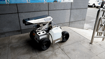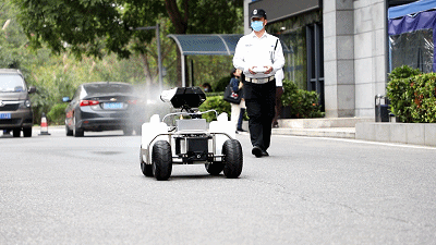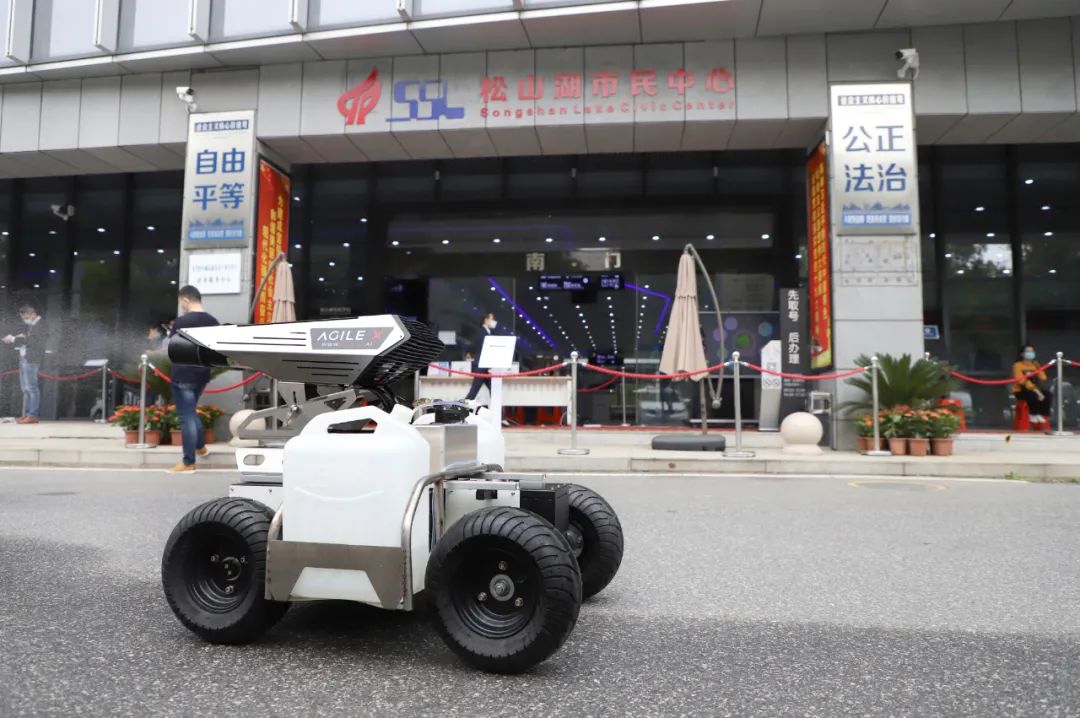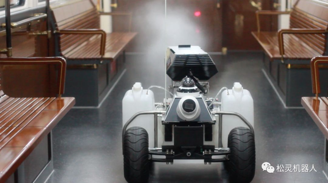 由松灵机器人(东莞)有限公司研发的该款“消毒机器人”搭载了“5G平行驾驶”系统可在水泥、柏油路面长时工作,30L大容量药壶,喷枪可旋转360度喷药,充分稀释气溶胶浓度,最高时速6公里每小时,可进入狭窄、有顶公共场所工作,实现消毒工作“轻松化”和“智能化”。