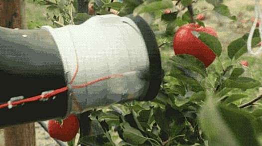 机器人概念出现后,由于许多国家加大了研发农业机器人的力度,使得一些新型的农业机器人层出不穷。采摘机器人:美国公司 Abundant Robotics 研发了一款苹果采摘机器人,能够 24 小时不间断完成采摘工作,用来提升农业生产的效率。 虽然以采摘苹果为核心功能,但是这种功能也将延伸到其它种类的果实的采摘工作当中。Abundant Robotics 的解决方案是将机械手臂改成了类“吸尘器”的形式,即将水果“吸”到收纳装置当中,水果和空气接触,避免了机械设备对水果表面的伤害,这同时也意味着这款机器人的运用范围将更加广泛,而不局限于苹果的采摘。