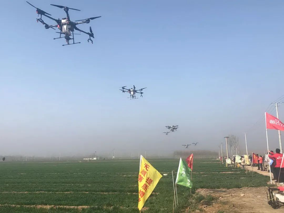 3月11日上午,聊城邮政在冠县定远寨镇举行“战疫情保春耕 邮农场在行动”暨植保无人机飞防启动仪式。现场,11架无人机同时升空,展示了高效的飞防作业。