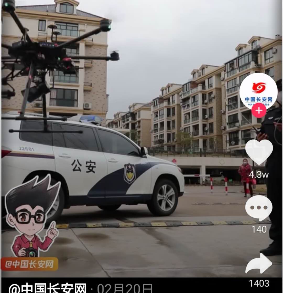 公安出动无人机喊话监控