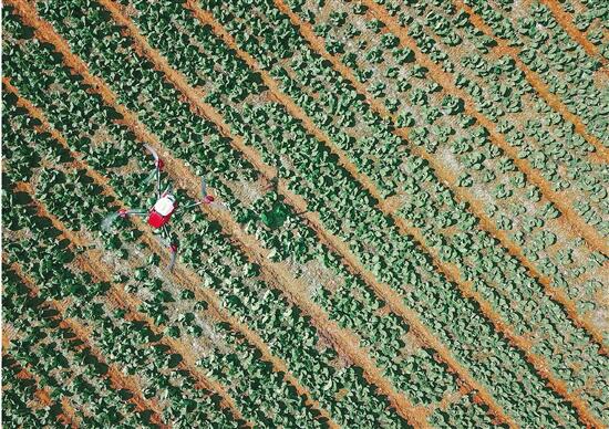 浙江在线3月18日讯(浙江在线拍友 丁力)3月16日,杭州市萧山区的围垦蔬菜种植基地,杭州大展农业公司植保无人机为近百亩包心菜来回喷洒叶面肥。该公司疫情期间采用4架植保无人机替代人工施肥,一架无人机可以完成过去10个人的工作量。
