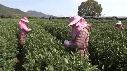 天气晴好,一早,茶山上就能看到采茶工们忙碌的身影。