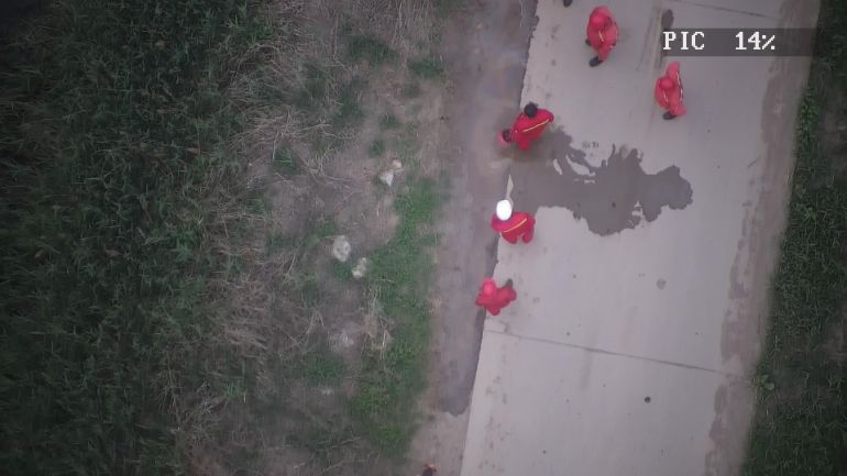 井场内人员车辆 飞行高度120m,距离目标物300m