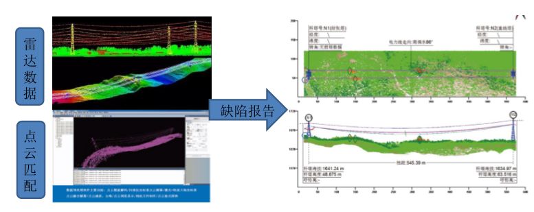 利用无人机机载激光雷达获得的历史数据,基于图像密集点云匹配和立体测图技术,对输电线路通道导线弧垂建模、树障安全距离分析、交叉跨越距离测量,自动生成树障缺陷报告。