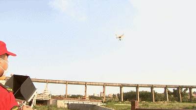 位于龙湖镇的阳溪是第三方机构开展巡查的首条河流,技术人员对相关设备进行检查后,一架无人机缓缓升起,飞往流域上空,开始投入工作。