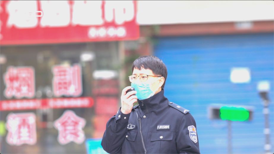公安民警同志对未佩戴口罩人员进行远程劝话群聚驱离