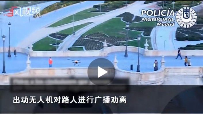 为维护治安,西班牙警方采用了与中国一些地市类似的方案。使用警用无人机对在外活动人群喊话,劝导群众返回家中进行隔离。