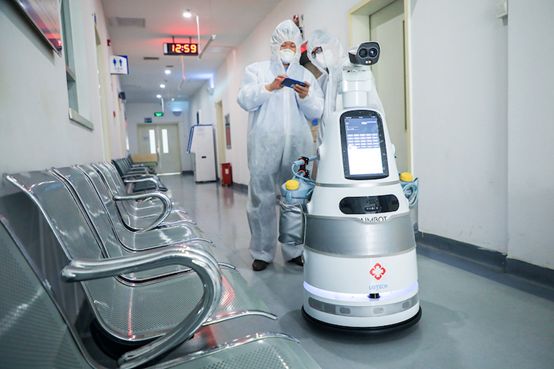 结合5G技术,包括室内巡逻机器人AimBot,室外巡逻机器人Atris和咨询机器人Cruzr在内的AI机器人正在四处走动,以发现发烧的人,识别没有口罩的人,喷洒消毒剂以及广播防止疫情传播信息。