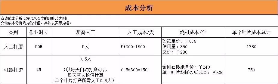 自动打磨系统拥有很高的打磨效率,打磨一个叶片的时间仅需3-4小时,其打磨效率是人工打磨的10倍以上,可24小时作业,无职业健康风险,预计2-4年可以收回设备成本。