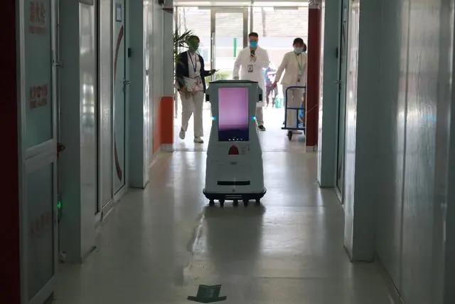 送货机器人主要负责把从医院库房领取出来的饮料等慰问品送到病区门口。“以前都是用平车拉,慰问品多的时候需要好几辆平车,每个平车两个人拉。”捐赠办公室主任杨兴宇说:“现在有了送货机器人,送货人员少了,省了很多力气。”
