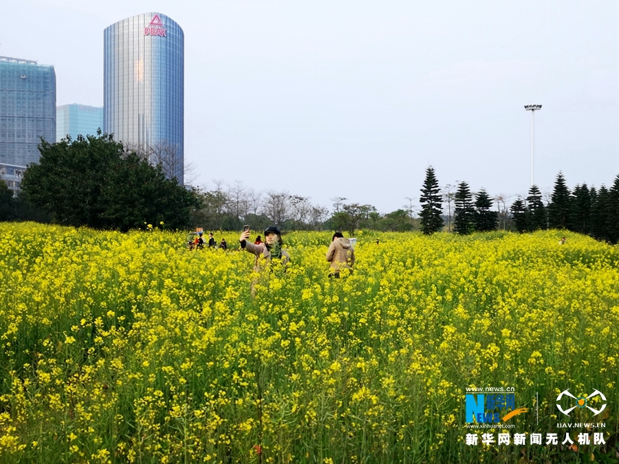 在泉州滨海公园,大片的油菜花迎春绽放,吸引市民前往观赏。新华网 王雄 摄