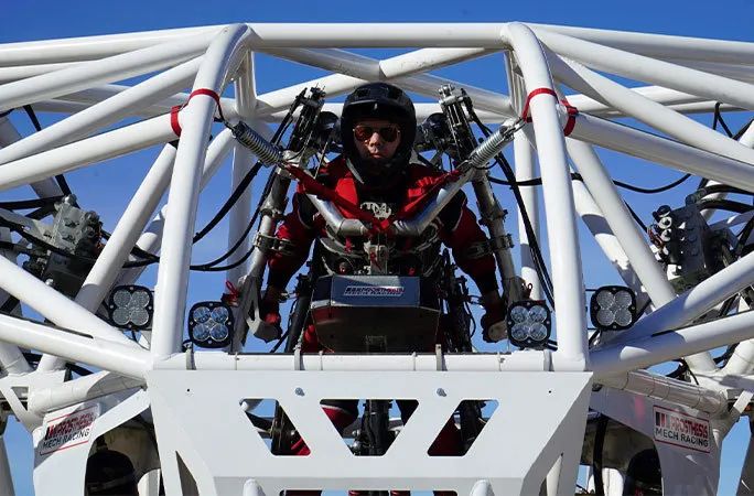 这个外甲机器人的身体和腿是由1600千克的铬钢管制成的,铬钢管是一种高性能材料,通常用于航空航天和赛车行业。
