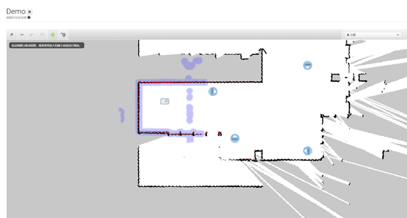 使用摇杆驱动机器人并开始录制地图。录制过程中建议先录主线,后录分支,最后返回录制起始位置形成一个完整闭环。录制完的地图需要旋转对齐,使路径与地图的X-Y轴方向一致。