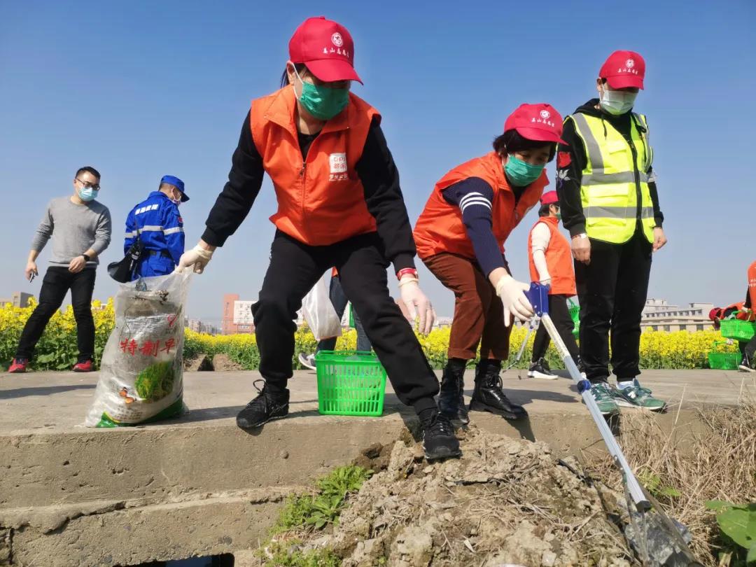 高新区新明街道、综合行政执法局等开展了巡河护绿行动,清理河道堤坝和草丛里的塑料袋、废旧口罩等杂物。