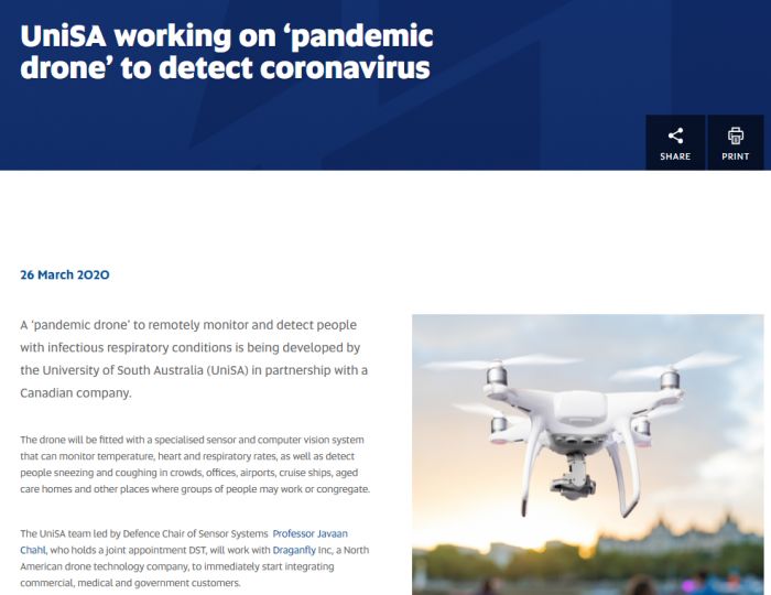 UniSA在新闻稿中表示,其目标是“立即开始整合商业、医疗和政府客户”,但现阶段尚未提供任何有关该技术推广的详细信息。除筛选病毒感染外,该技术还具有监控婴儿保育箱或应对战区和自然灾害的应用。