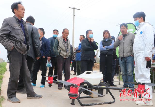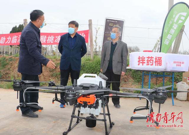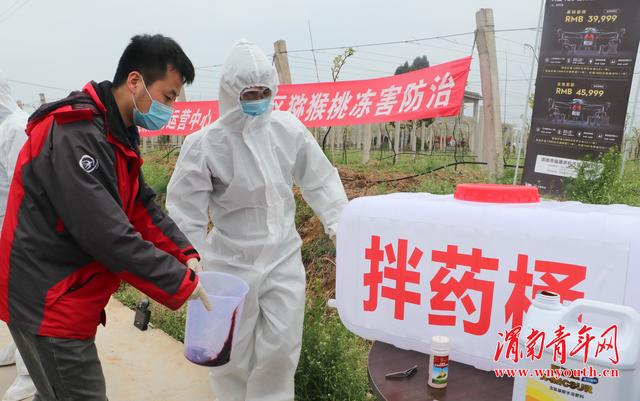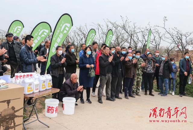渭南青年网(图/文 闵盼龙 马青青)近日,临渭区猕猴桃正处于展叶期,为防范连日降温可能造成的低温冻害,3月28日,区果业发展中心在三张镇郭西村组织召开猕猴桃冻害综合预防无人机喷药演示现场会,果业发展中心技术人员向果农进行了冻害综合防治培训和无人机喷药演示。市果业发展中心主任苏新会、副调研员韦建平、区农业农村局局长王骞、区果业发展中心主任乔少华等40余人参加了活动。