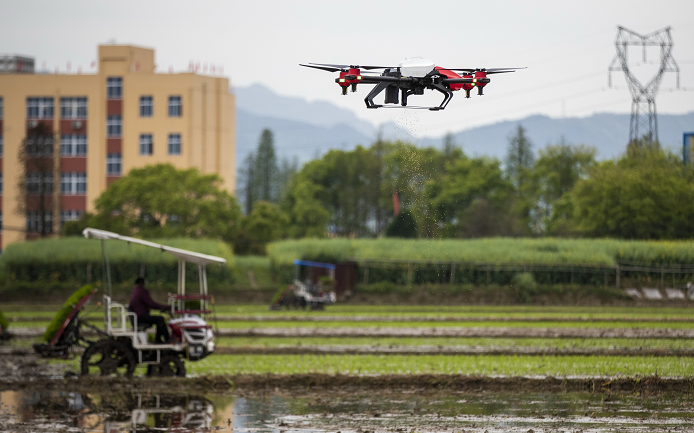 技术员将早稻种子装进无人机的播种套件内,之后通过手机操控设定程序,不出5分钟,2亩多的水稻直播工作就完成了。“在理想状态下,一台无人机每天至少能够播种200亩,分别是机插和人工洒播的5倍和10倍。”技术人员郭峰说。“地块扫描后录入无人机系统,只要作业过的领域,都会有数据记录,哪怕是十年前洒了多少药、种下多少种子,都能追踪到。”无人机还可解决土质软、插秧机下陷难作业等难题。