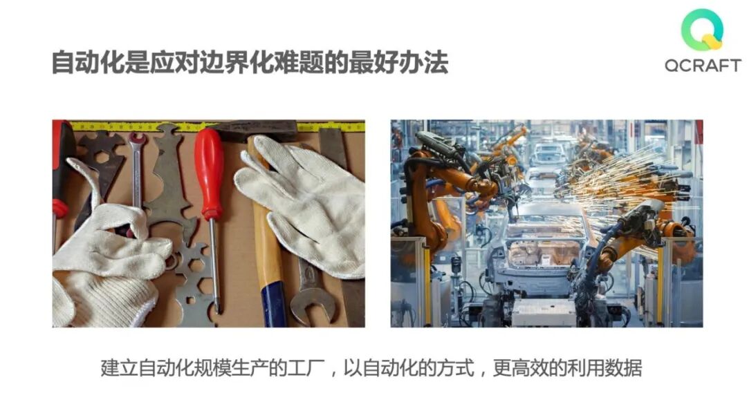 除了收集大量的数据,更重要的是建立自动化生产的工厂,将源源不断收集来的有效数据,通过自动化的工具,加工成可用的模型。以更快的速度、更高效的方式应对边界化难题。