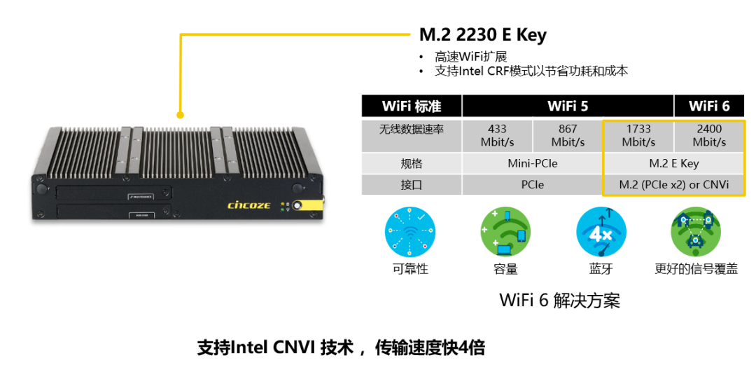 1个M.2 E Key插槽,支持Intel CNVi技术