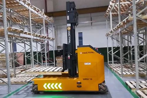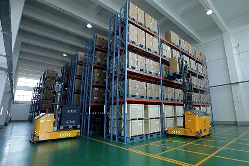 ①货架通道宽度2.3米,根据托盘尺寸及货架间隙定制OMV智能叉车车体的外形尺寸,充分利用货架与货架之间的仓储面积,提升储存货量;