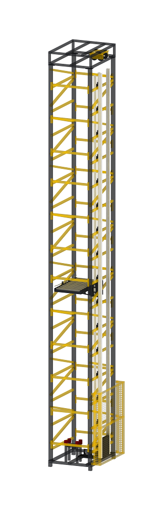 1100mm*960mm*h(定制),占地面积更小,不同提升高度适用于不同厂房高度的使用需求;可采用单/双/多等不同数量的载货台配置形式,满足多种效率及应用场景需求。